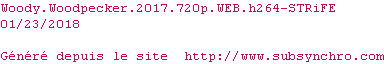 | Voir le nfo de la release Woody.Woodpecker.2017.720p.WEB.H264-STRiFE | STRiFE | Woody.Woodpecker.2017.720p.WEB.H264-STRiFE OpenSubtitles | 0 fichier |