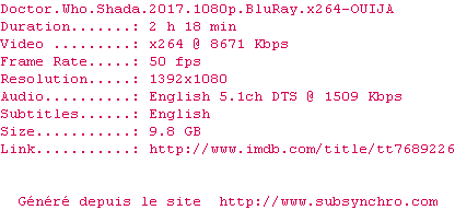 Voir le nfo de la release Doctor.Who.Shada.2017.1080p.BluRay.x264-OUIJA