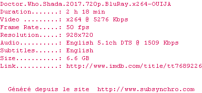 Voir le nfo de la release Doctor.Who.Shada.2017.720p.BluRay.x264-OUIJA