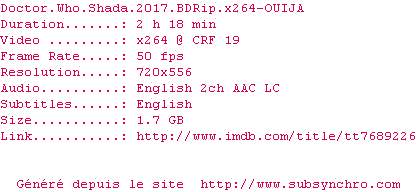 Voir le nfo de la release Doctor.Who.Shada.2017.BDRip.x264-OUIJA