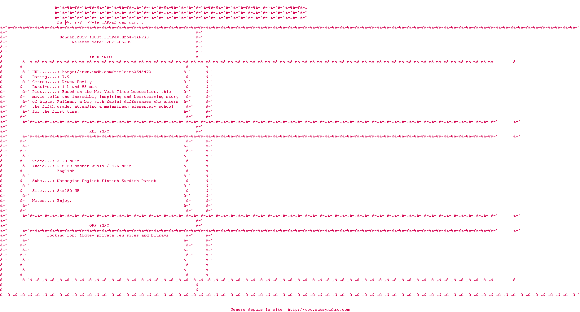Pour ceux qui ne sont pas fans des films "emo" vous trouverez surement à redire. Pour les autres, ce film est plein d'espoir, de justesse, de douceur; et ses leçons vont bien au-delà de son personnage principal. Faites le voir à vos enfants ce sera un bel apprentissage.