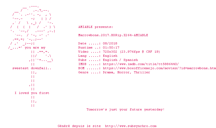 Voir le nfo de la release Marrowbone.2017.720p.BluRay.x264-AMIABLE