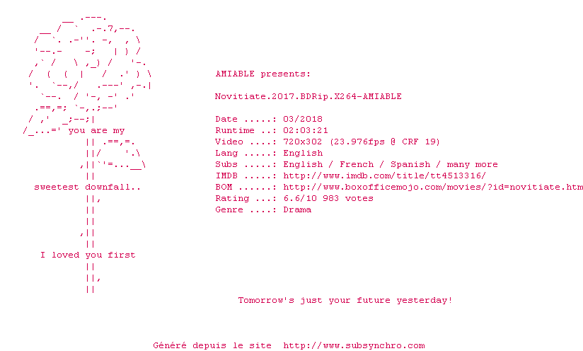 Voir le nfo de la release Novitiate.2017.BDRip.x264-AMIABLE