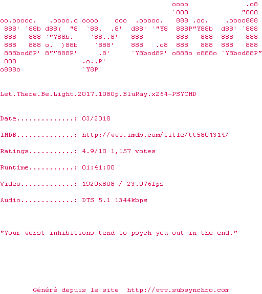 Voir le nfo de la release Let.There.Be.Light.2017.1080p.BluRay.x264-PSYCHD