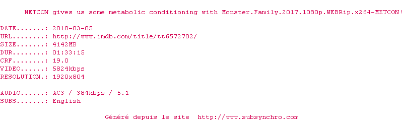 Voir le nfo de la release Monster.Family.2017.REPACK.720p.WEBRip.x264-METCON