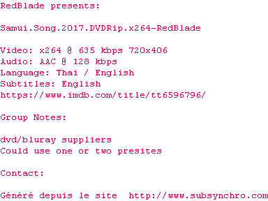 Voir le nfo de la release Samui.Song.2017.DVDRip.x264-RedBlade