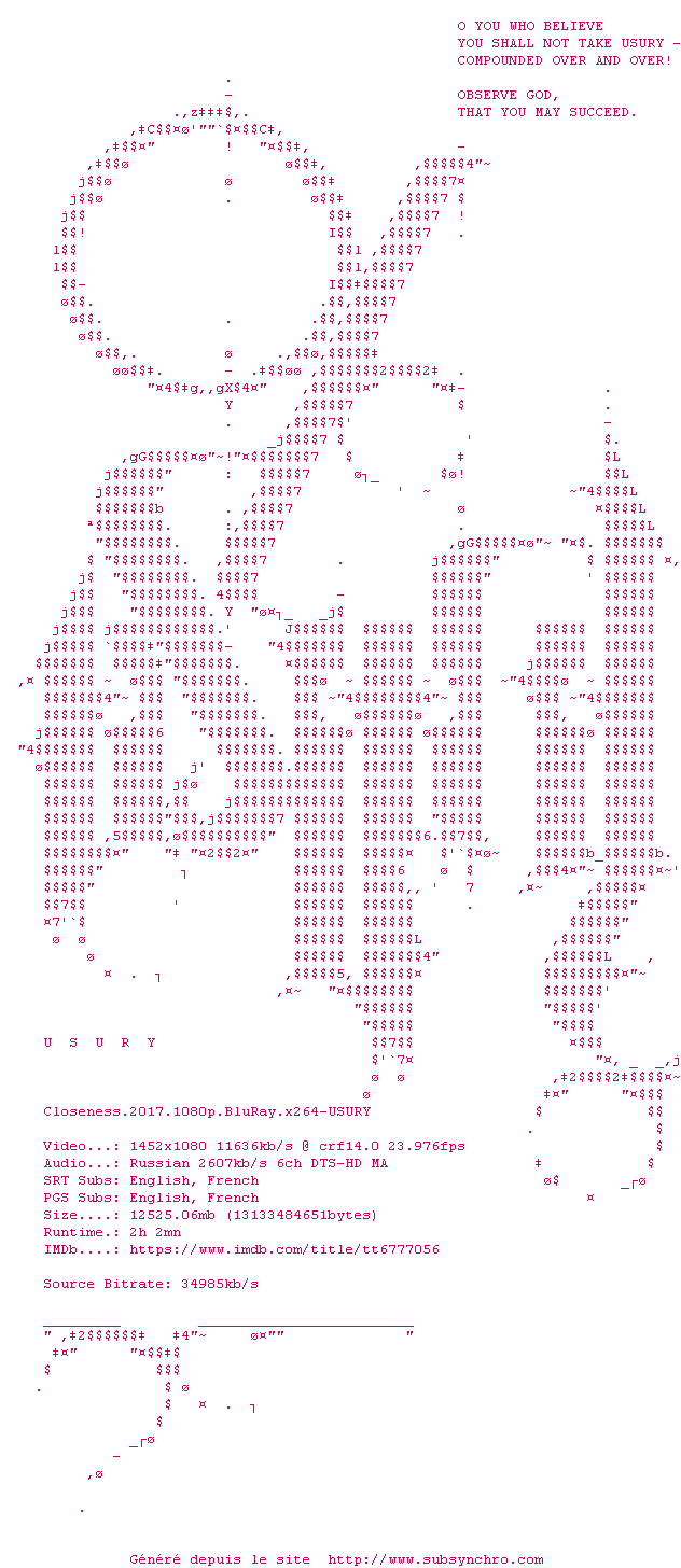Voir le nfo de la release Closeness.2017.1080p.BluRay.x264-USURY