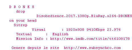 Disobedience.2017.BDRip.x264-DRONES.Fr.srt
