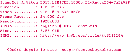Telechargez le RSS « Fichier de la release I.Am.Not.A.Witch.2017.LIMITED.1080p.BluRay.x264-CADAVER »