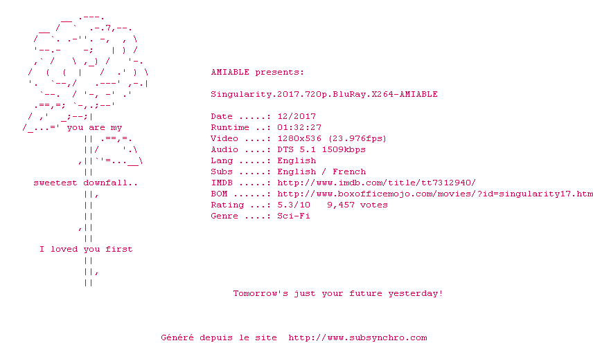 Telechargez le RSS « Fichier de la release Singularity.2017.720p.BluRay.x264-AMIABLE »