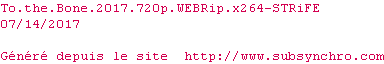 Telechargez le RSS « Fichier de la release To.The.Bone.2017.720p.WEBRip.x264-STRiFE »