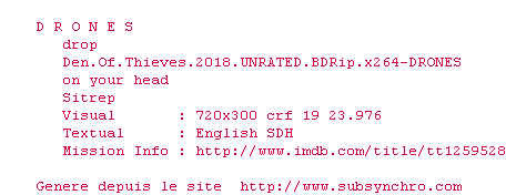 Le commentaire de lemiscat Commente par lemiscat (23), Le Samedi 14 Avril 2018 à 22h51 À mon avis. Un sous navet joliment photographié mais prévisible à 200%, deux pauvres scènes de fusillades, des muscles des tatouages et beaucoup de barbes... ah oui et aussi un festival de Butler qui grimace, gonfle les joues, fronce les sourcils, joue la caricature de flic badass pas crédible une seconde... Perte de temps. 2 0