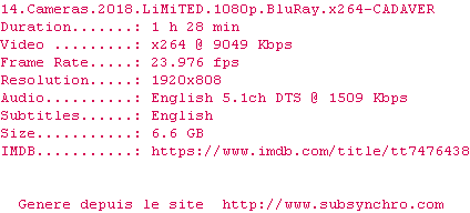 Voir le nfo de la release 14.Cameras.2018.LiMiTED.1080p.BluRay.x264-CADAVER