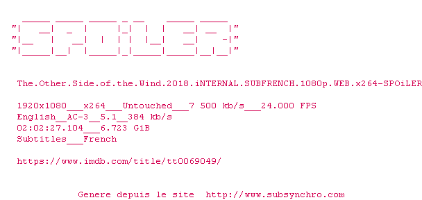 Voir le nfo de la release The.Other.Side.Of.The.Wind.2018.iNTERNAL.SUBFRENCH.1080p.WEB.x264-SPOiLER