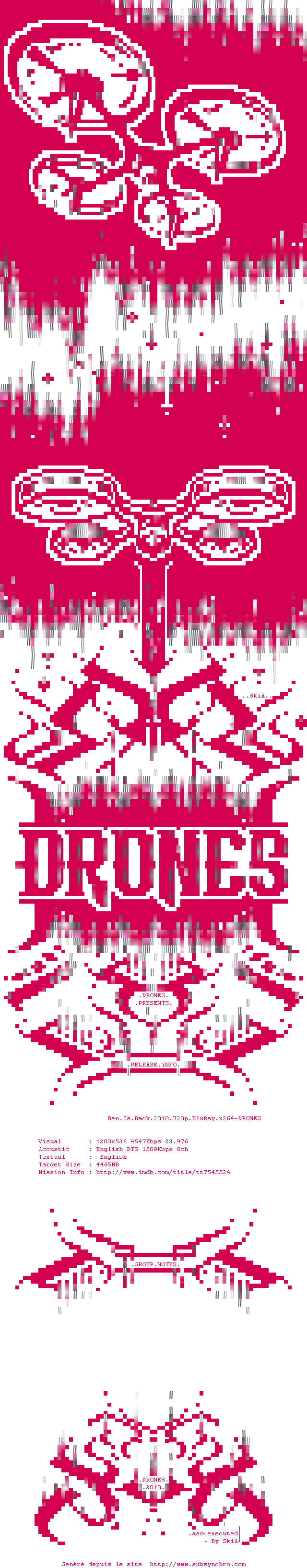 Voir le nfo de la release Ben.Is.Back.2018.1080p.BluRay.x264-DRONES