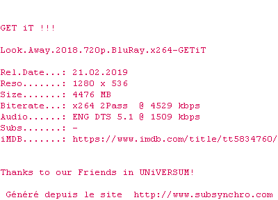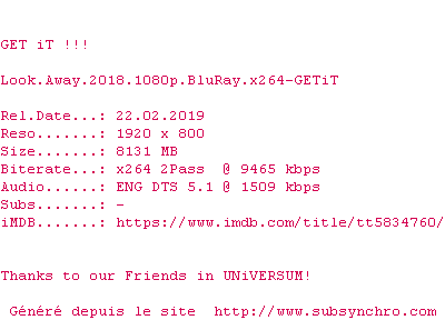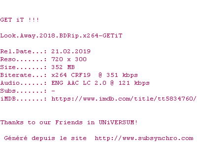 Voir le nfo de la release Look.Away.2018.BDRip.x264-GETiT