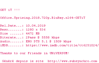 Voir le nfo de la release Office.Uprising.2018.BDRip.x264-GETiT