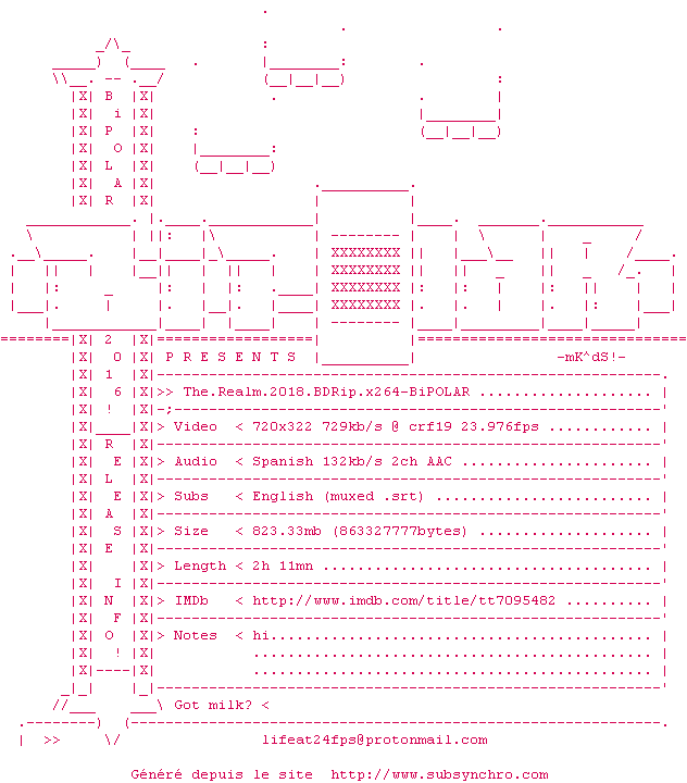 Voir le nfo de la release The.Realm.2018.BDRip.x264-BiPOLAR