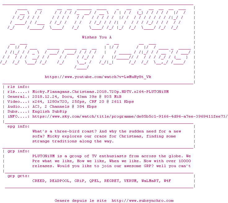 Voir le nfo de la release Micky.Flanagans.Christmas.2018.1080p.HDTV.H264-PLUTONiUM