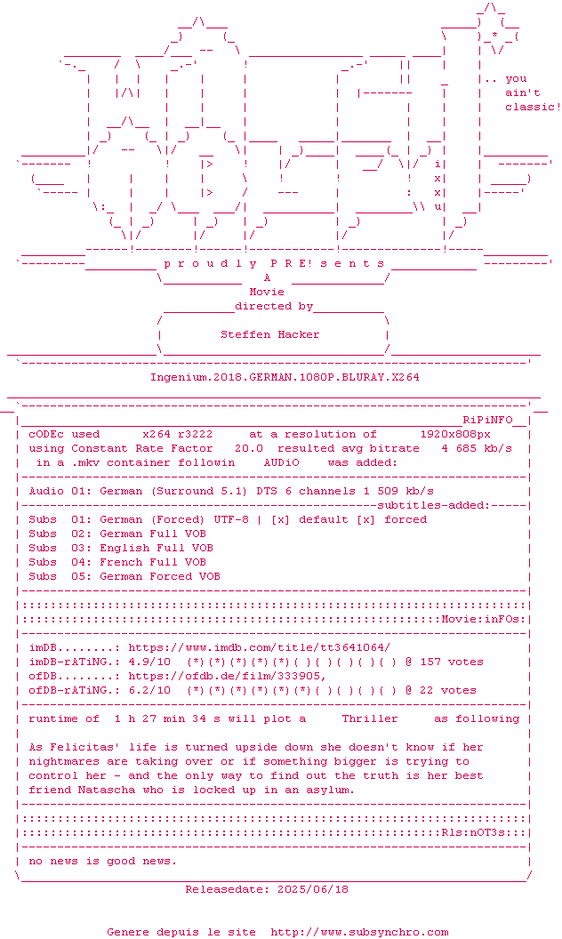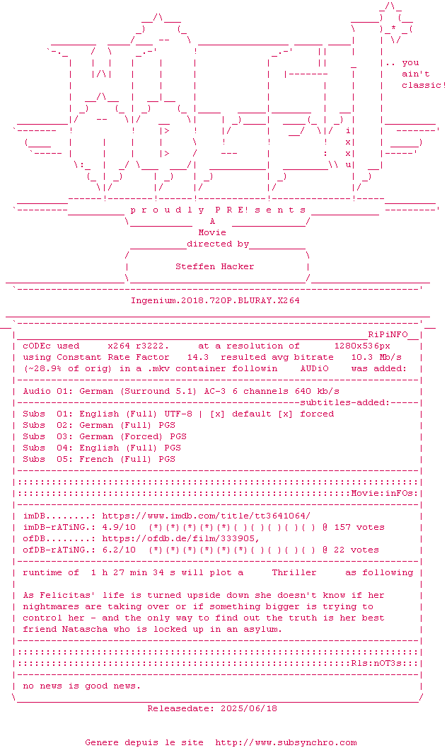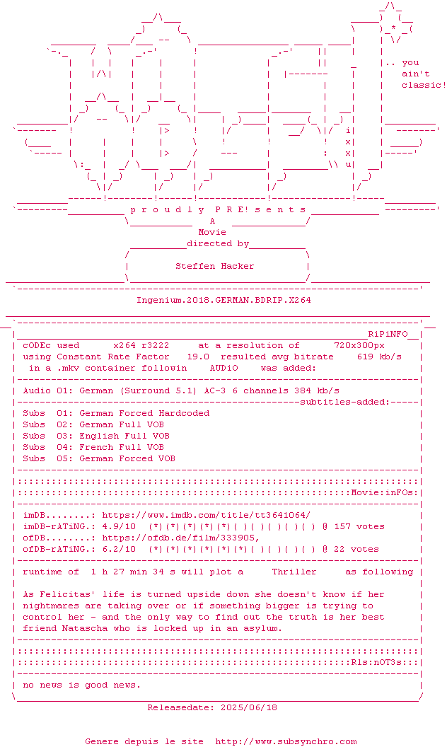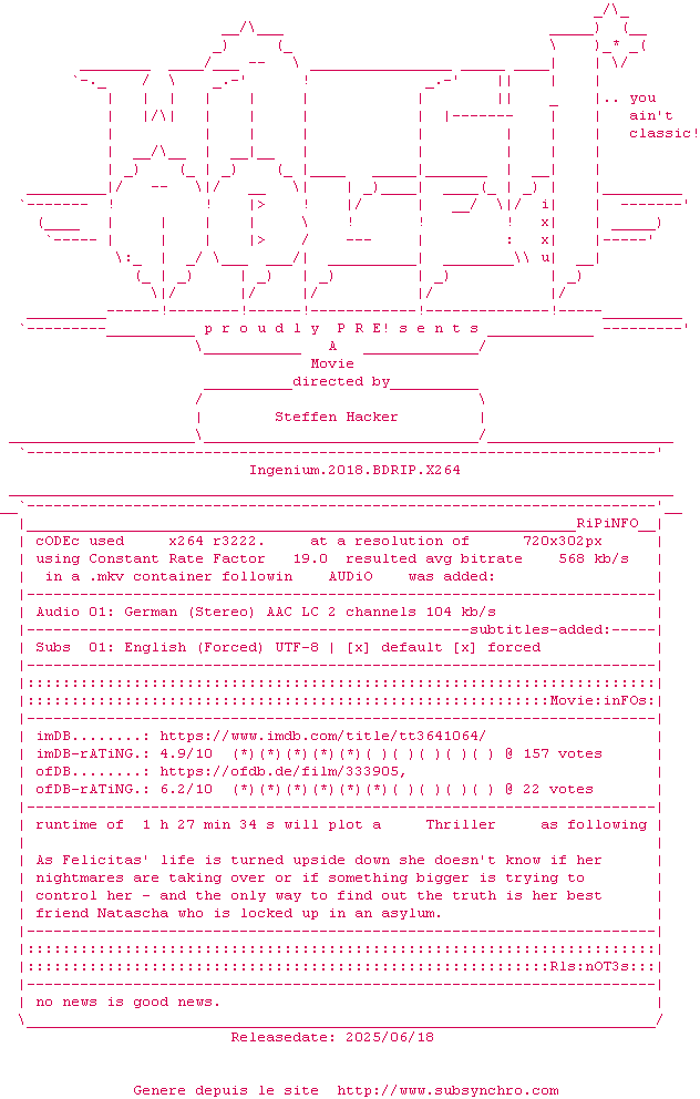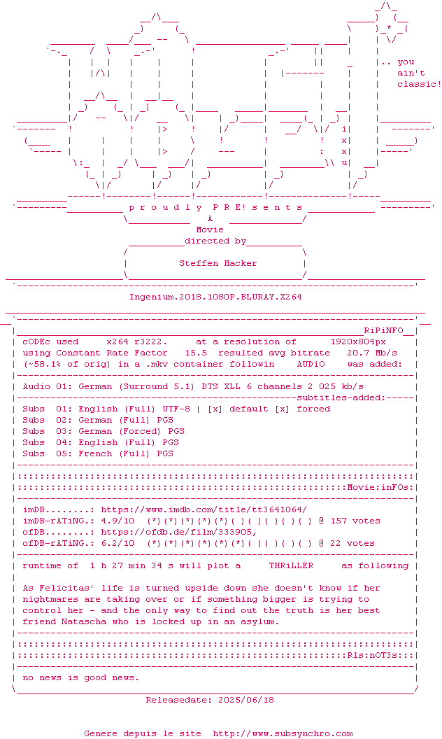 Alors que la vie de Felicitas est bouleversée, elle ne sait pas si ses cauchemars prennent le dessus ou si quelque chose de plus grand essaie de la contrôler - et le seul moyen de découvrir la vérité est sa meilleure amie Natascha qui est enfermée dans un asile.
