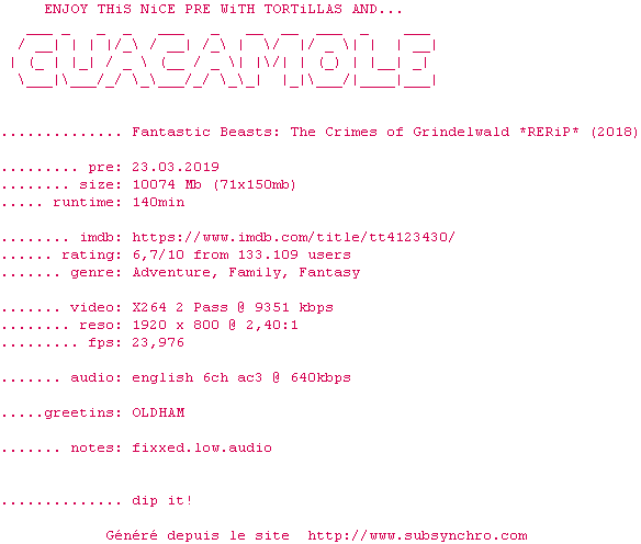 Sous titre extrait de : Les Animaux fantastiques Les.crimes.de.Grindelwald.(2018).EXTENDED.VOSTFR.[1080p].Bluray.HDLIGHT.AC3.x264-OLOBYHD(Fantastic Beasts The Crimes Of Grindelwald)
