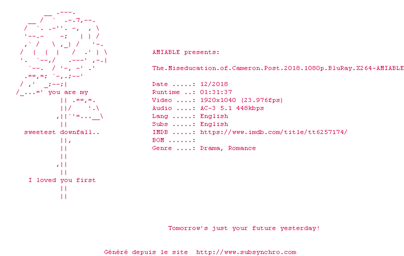 Commentez le fichier The.Miseducation.of.Cameron.Post.2018.BDRip.X264-AMIABLE.srt