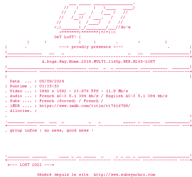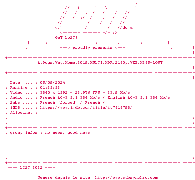 Voir le nfo de la release A.Dogs.Way.Home.2019.MULTI.2160p.WEB.H265-LOST