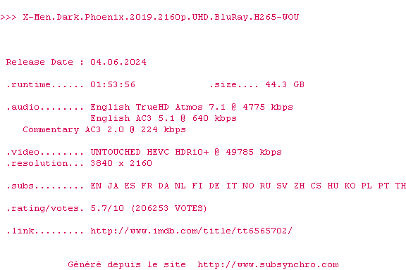 Bref, c'est dommage de finir la saga X-Men là -dessus, d'autant que X-Men First Class et Days of Future Past étaient bons.