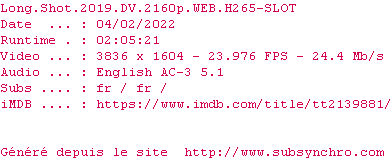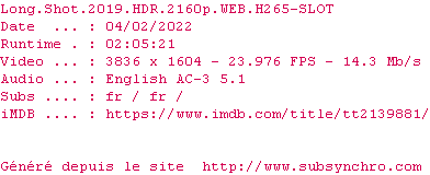 Le commentaire de bitonio6 Commente par bitonio6 (87), Le Dimanche 06 Octobre 2019 à 22h32 Dieu que je n'aime pas cet acteur et voir un film où il se retrouve avec l'une des meilleures actrices de sa génération, ça fait un peu mal à regarder ! Finalement, c'est moins mauvais que ça ne laissait imaginer. Une simple distraction sans plus. 6 / 10 0 0