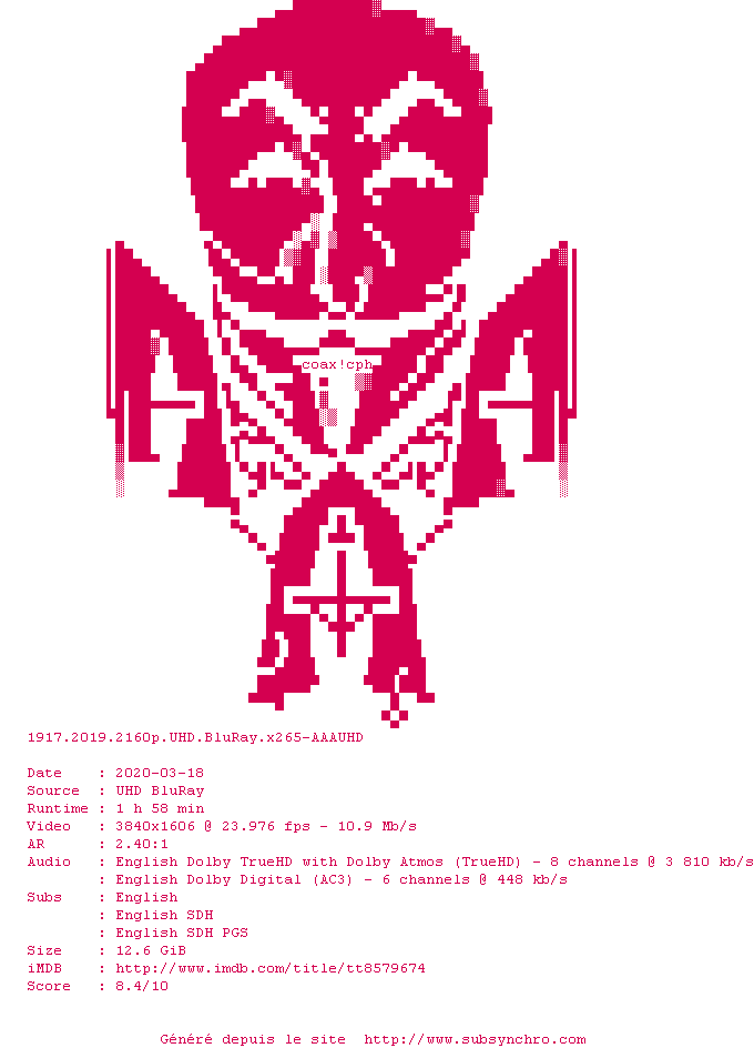 Le commentaire de mynameisfedo Commente par mynameisfedo (22), Le Dimanche 03 Mai 2020 à 04h03 Une super-production comme on en voit peu aujourd'hui. Ce film, c'est un peu Qui veut sauver le soldat Ryan à la sauce première guerre mondiale. Evidemment, c'est un peu différent et ça démarre plutôt calmement. Mais ces 2 soldats qui partent en mission dans le bourbier présentent une vision particulièrement forte et réaliste de ce qu'ont pu connaître les soldats à l'époque. Mais c'est surtout la réalisation qui détonne avec un cadrage de la caméra qui suit continuellement à hauteur d'homme les 2 protagonistes, et par moment, je me demande même comment ils s'y sont pris pour filmer. Point d'orgue: le passage dans le village d'Ecoust-Saint-Mein en pleine nuit alors que des allemands circulent et tirent sur tout ce qui bouge. Un film de guerre qui nous évite les poncifs, qui va à l'essentiel et nous présente la guerre comme on devrait logiquement la détester. Pari réussi donc. Je recommande ce film à tous ceux qui aiment le Grand cinéma. 9.5 / 10 0 0