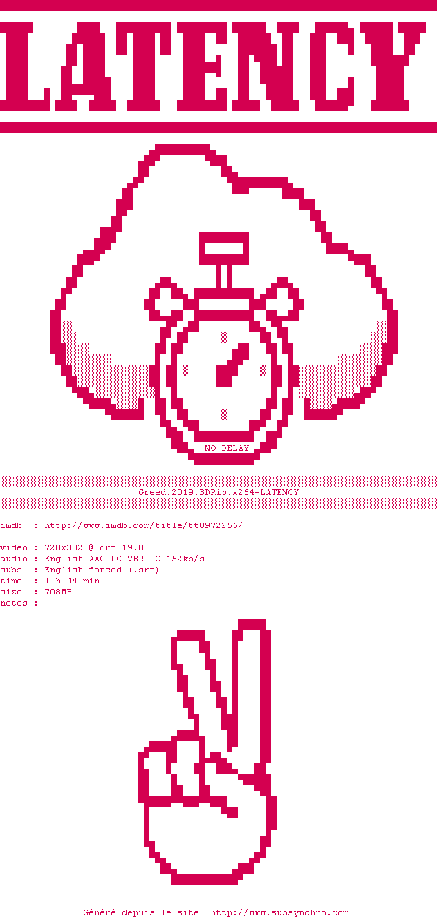 Voir le nfo de la release Greed.2019.BDRip.x264-LATENCY