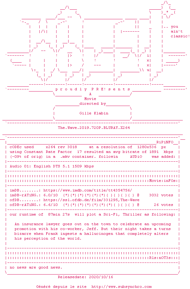 Voir le nfo de la release The.Wave.2019.720P.BLURAY.x264-WATCHABLE