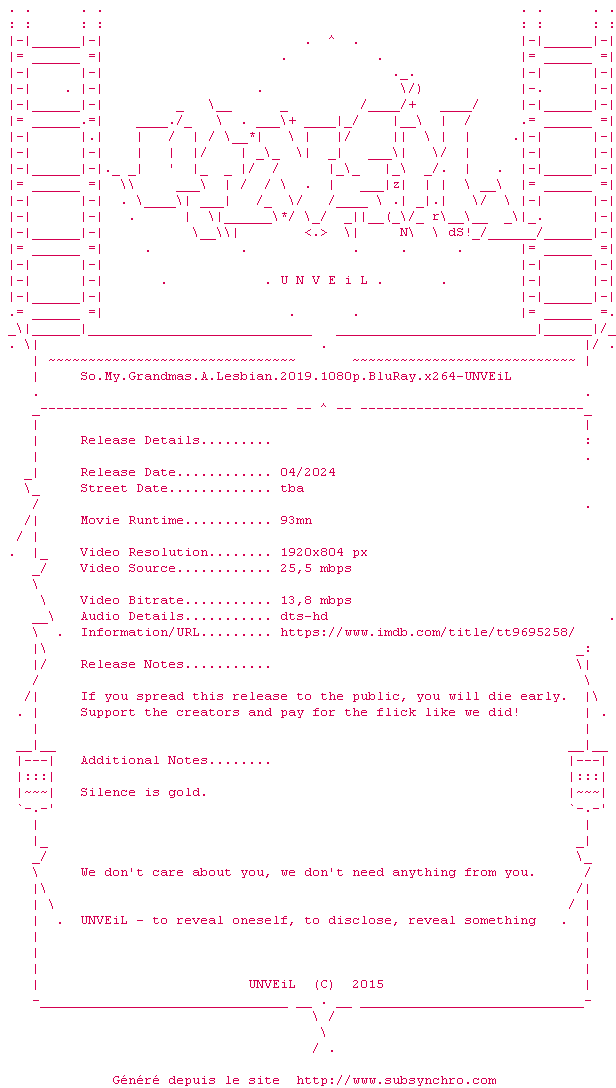Voir le nfo de la release So.My.Grandmas.A.Lesbian.2019.1080p.BluRay.x264-UNVEiL