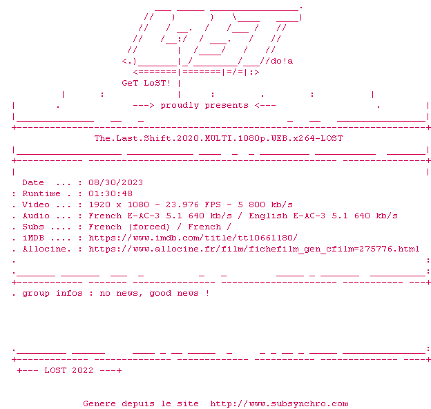 Telecharger le ZiP contenant NFO, Affiche, Sous-titre (*.srt)
