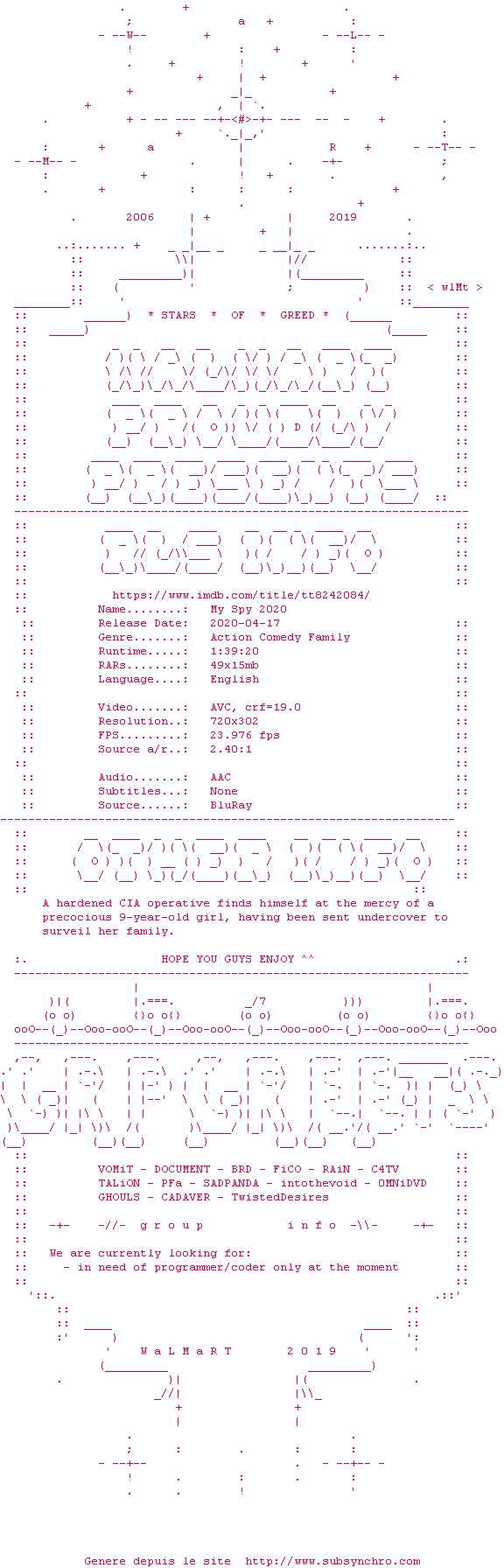 Voir le nfo de la release My.Spy.2020.BDRip.x264-WaLMaRT