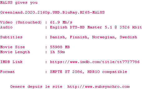 Le commentaire de pastema Commente par pastema (8), Le Jeudi 10 Decembre 2020 à 09h14 Mouaih..Bon c'est le confinement, et pour ceux qui ne bossent pas comme moi, ca fait passer le temps mais il est vrai que y'a pas grand chose au fond, dans ce film... Je me faisais une joie de le voir et ai été plutot deçu. Et le scenario est le meme que 2012, c'est a dire qu'il tient vraiement sur un format A5, et encore. pour ceux qui s'ennuient chez eux 3.5 / 10 0 3