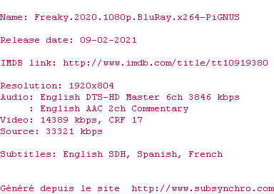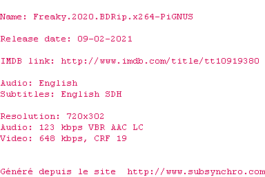Voir le nfo de la release Freaky.2020.BDRip.x264-PiGNUS
