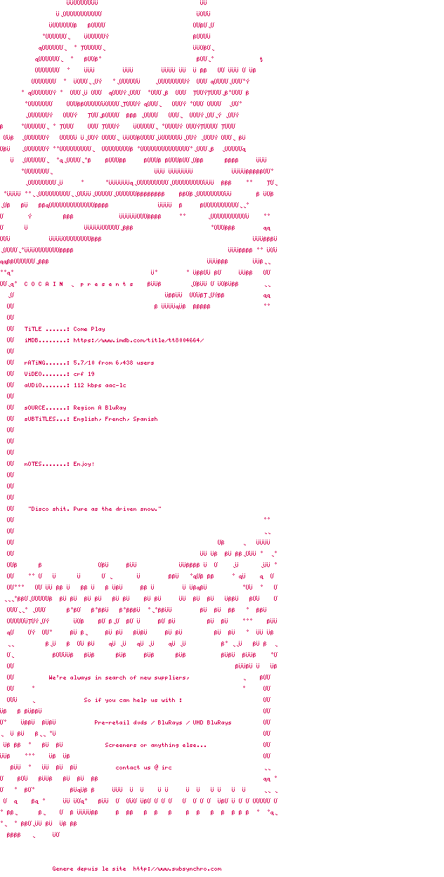 Voir le nfo de la release Come.Play.2020.BDRip.x264-COCAiN