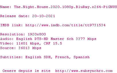 Voir le nfo de la release The.Night.House.2020.1080p.BluRay.x264-PiGNUS