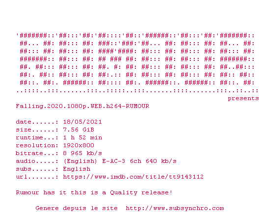 Voir le nfo de la release Falling.2020.1080p.WEB.H264-RUMOUR
