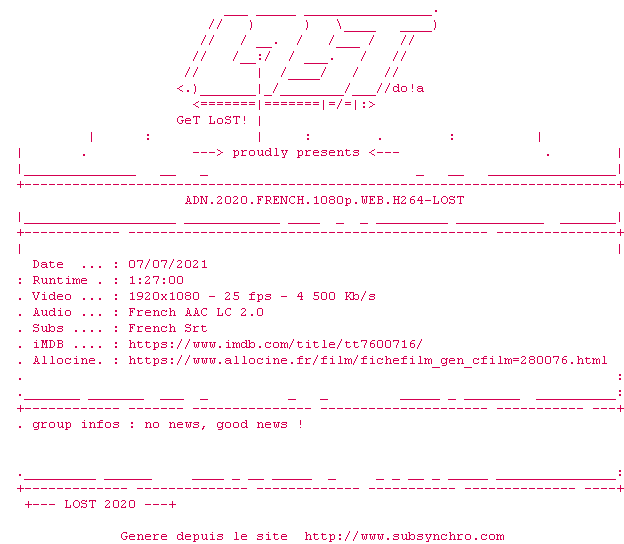 Voir le nfo de la release ADN.2020.FRENCH.WEB.H264-LOST