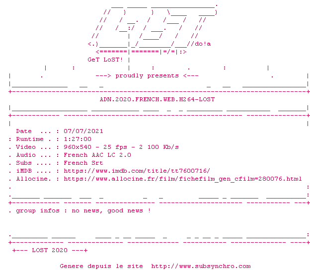 Voir le nfo de la release ADN.2020.FRENCH.1080p.WEB.H264-LOST