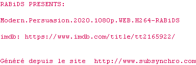 | RABiDS | Modern.Persuasion.2020.720p.WEB.H264-RABiDS OpenSubtitles | 0 fichier | |||