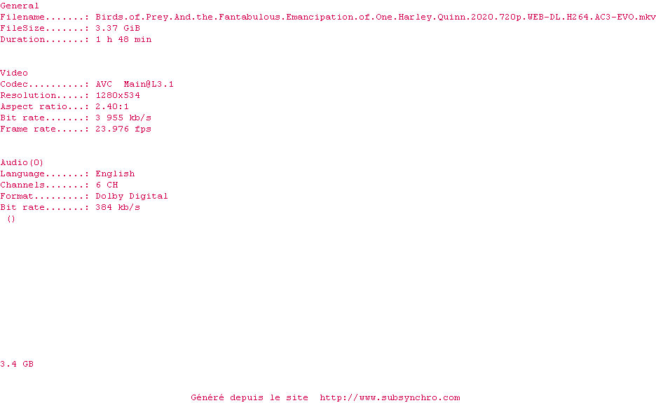 Commentez le fichier Birds.of.Prey.And.the.Fantabulous.Emancipation.of.One.Harley.Quinn.2020.720p.WEB-DL.H264.AC3-EVO.French.srt