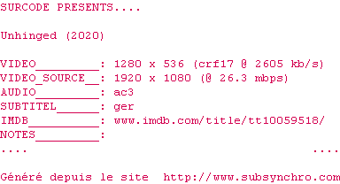 Telechargez le RSS « Fichier de la release Unhinged.2020.720p.BluRay.x264-SURCODE »