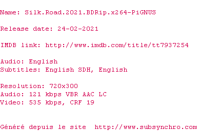 Voir le nfo de la release Silk.Road.2021.720p.BluRay.x264-PiGNUS