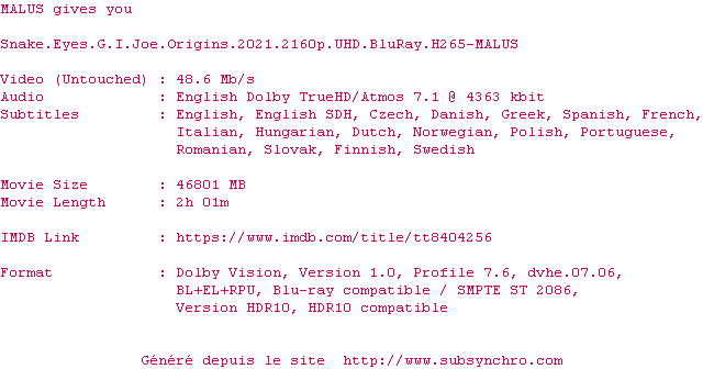 Le commentaire de bitonio6 Commente par bitonio6 (244), Le Samedi 21 Aout 2021 à 14h54 Aucun acteur connu, quelques effets spéciaux pas trop mal, mais ça manque cruellement de personnalité, de charisme, c'est ce qui fait un film qui sort au cinéma ou pas (quoi que...). 5 / 10 0 0