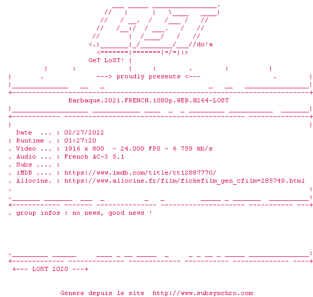 Le commentaire de SubSynchro Commente par SubSynchro (442), Le Vendredi 05 Novembre 2021 à 22h18 Film sympathique où limite tu es gênée de rire autant de ces trucs un peu gore et avec une fin horriblement trash mais ça reste sympathique quand même Après si tu aimes Eboué, tu vas reconnaitre et apprécier le ton un peu osé 8 / 10 0 0