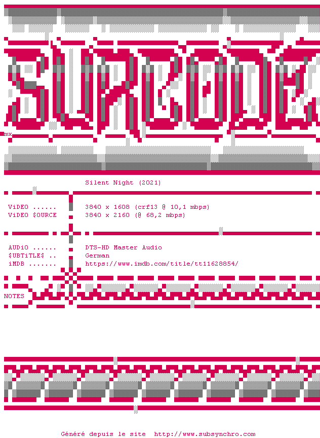 Voir le nfo de la release Silent.Night.2021.2160p.UHD.BluRay.x265-SURCODE