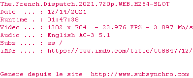 Voir le nfo de la release The.French.Dispatch.2021.720p.WEB.H264-SLOT
